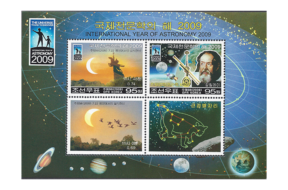 Chollima Statue, Solar Eclipse, Galileo Galilei, Telescope, Planets, Stars and 2 Labels