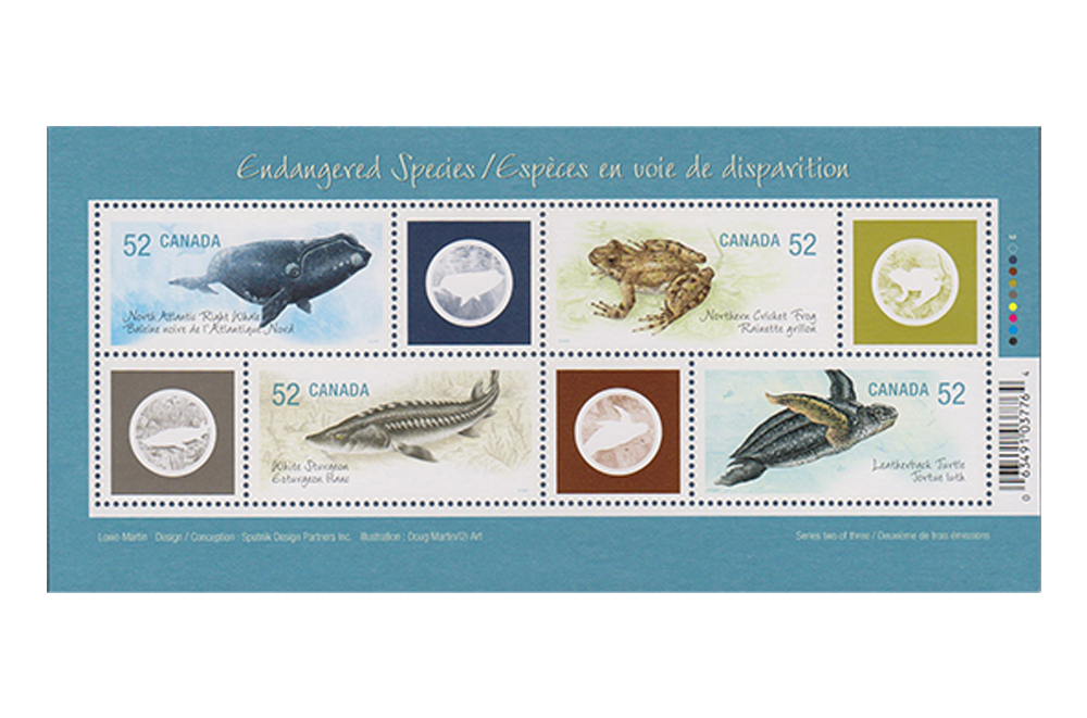 North Atlantic Right Whale, Northern Cricket Frog, White Sturgeon and Leatherback Turtle