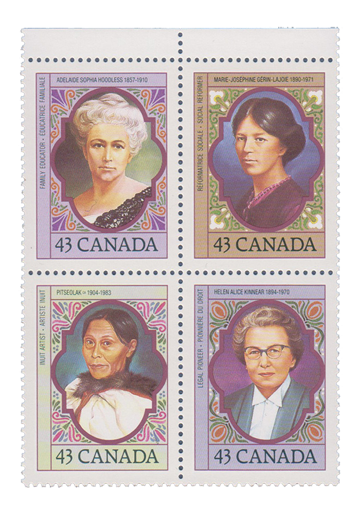 Adelaide Hoodless, Marie-Joséphine Gérin-Lajoie, Pitseolak Ashoona and Helen Kinnear