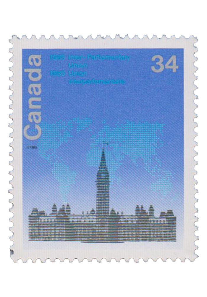 74th Conference of the Inter-Parliamentary Union '85, Ottawa - Stylized Map Over Parliament Buildings
