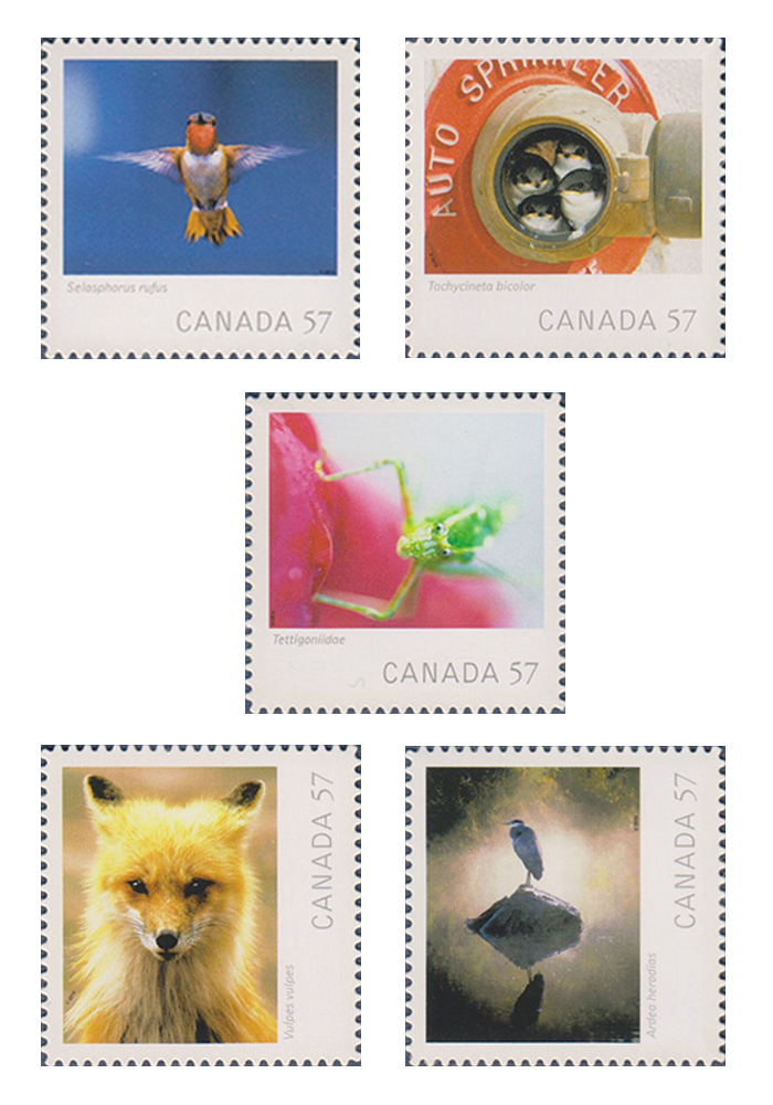 Hummingbird, Tree Swallows, Katydid, Red Fox and Great Blue Heron
