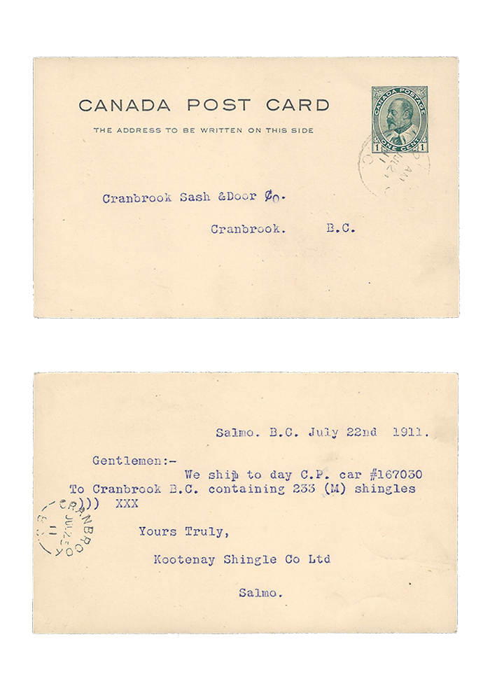 Notification of Shipment of Shingles by CP Rail from Kootenay Shingle Co. Ltd.